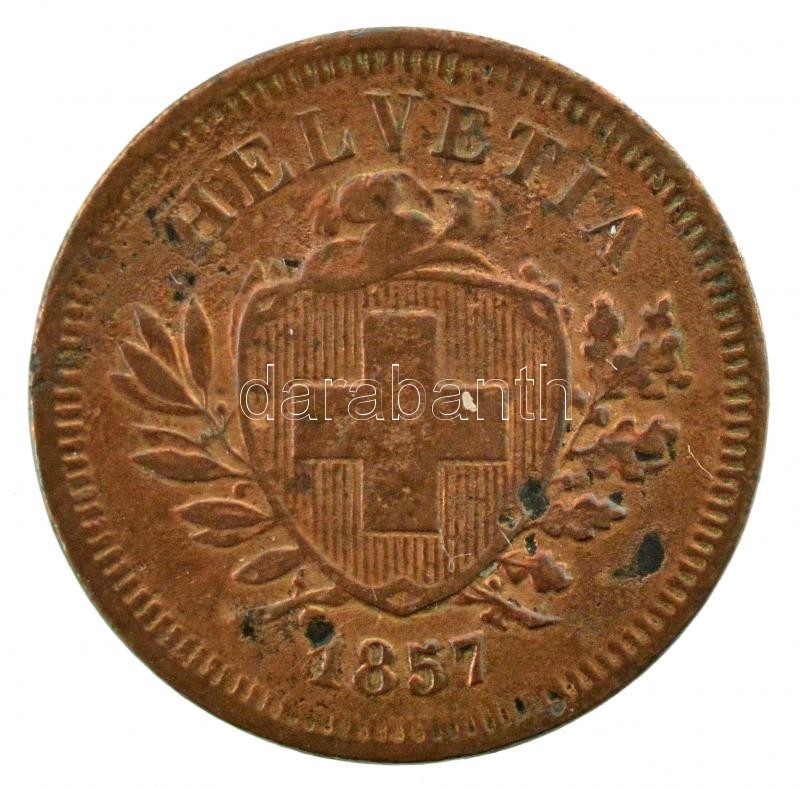 Krause KM# 3 https://www.darabanth.com/hu/412-Gyorsarveres/412.0/Numizmatika/Kulfoldi-fem-es-ezustpenzek~1500014/Svajc-1857-1R-T2--Switzerland-1857-1-Rappen-CVF-Krause-KM23-3~II2565833