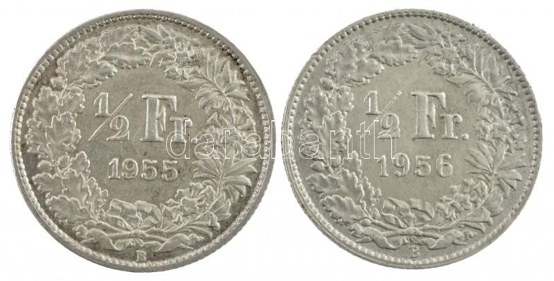 Svájc 1955B 1/2Fr Ag + 1956B 1/2Fr Ag T:2 patina, kis ph, kis karc