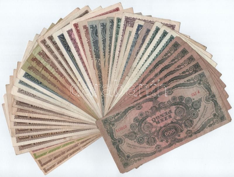 Leírás: 1945-1946. 40 db-os Pengő bankjegytétel, közte Milpengők (8 db), B-Pengők (2 db) és Adópengők (4 db) T:III köztük: szép papír, kis szakadások, foltok