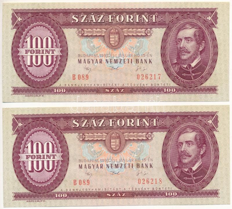 Leírás: 1992. 100Ft (2x, sorszámkövetők "B 089 026217 - B 089 026218") T:I,I- Adamo F37