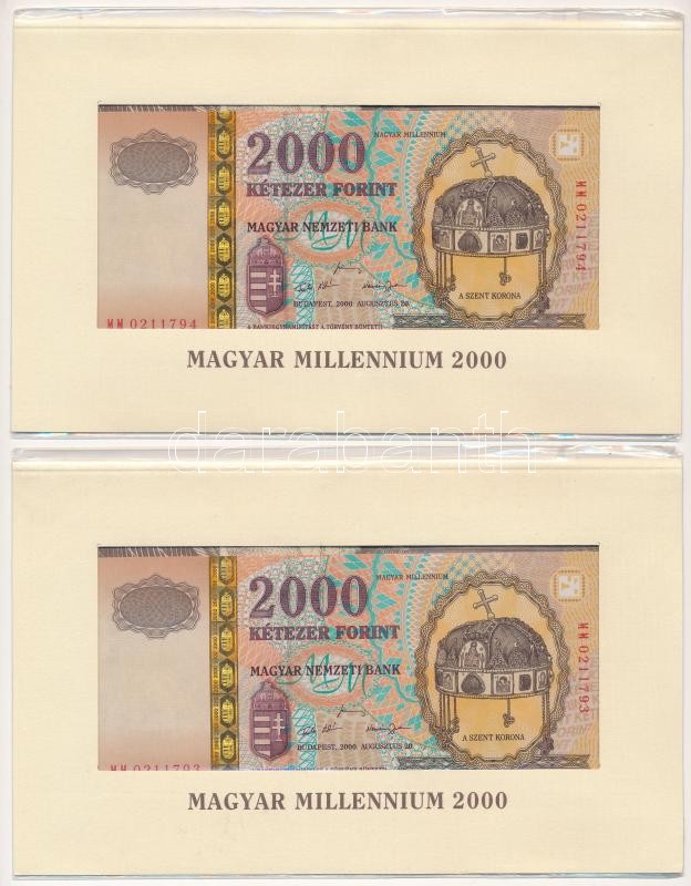 Leírás: 2000. 2000Ft "Millenium" (2x) sorszámkövetők eredeti, bontatlan díszcsomagolásban "MM 0211793 - MM 0217794" T:I Adamo F56A