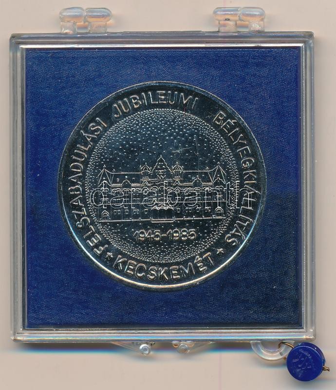 Leírás: 1985. "Magyar Bélyeggyűjtők Országos Szövetsége / Felszabadulási Jubileumi Bélyegkiállítás - Kecskemét" fém emlékérem, plombált tokban T:1