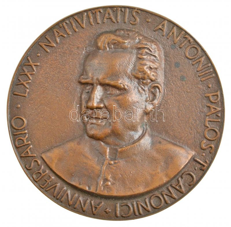 1994. Pálos Antal születésének 80. évfordulójára készült egyoldalas Br plakett (100mm) hátulján a szerzetes saját aláírásával "Imádkozzunk! Szeretettel, Pálos Antal" T:1 kis patina