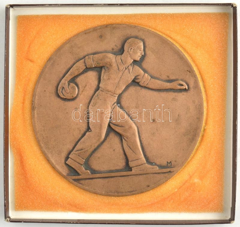 Leírás: DN "Tekéző" egyoldalas, öntött Br plakett, Szign.: M (130mm) T:1- patina