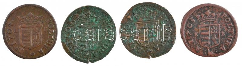 Leírás: 1704-1707. Poltura Cu "II. Rákóczi Ferenc" Körmöcbánya (4xklf évjárat) T:1-,2 patina
