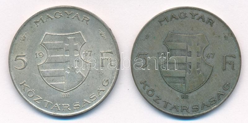 Leírás: 1947. 5Ft Ag "Kossuth" (2x) T:3 patina