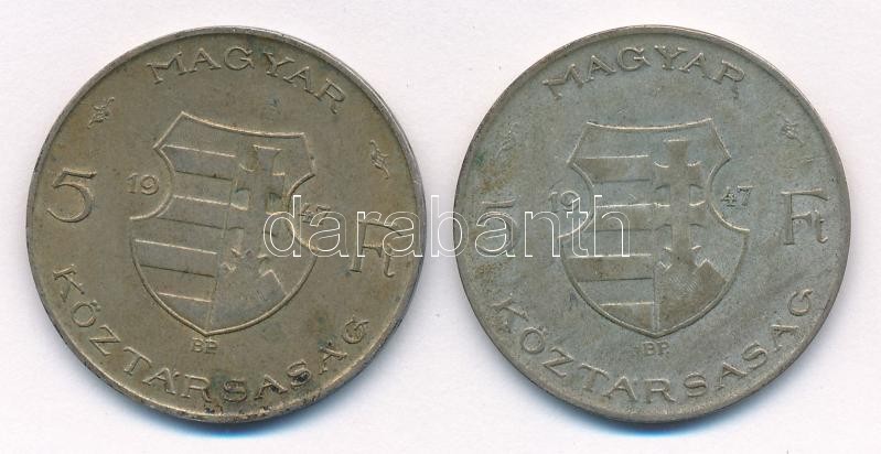 Leírás: 1947. 5Ft Ag "Kossuth" (2x) T:3 patina