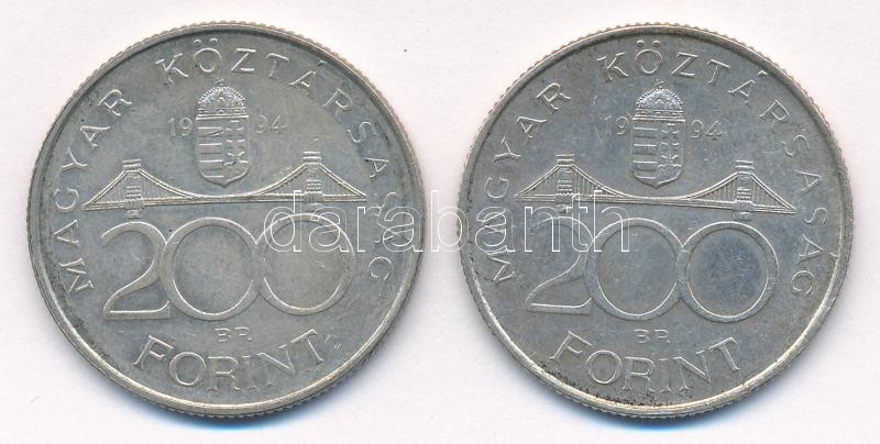 1994. 200Ft Ag "Deák" (2x) T:2 Adamo F13 https://www.darabanth.com/hu/412-Gyorsarveres/412.0/Numizmatika/Magyar-es-magyar-verdejelu-fem-es-ezustpenzek~1500009/1994-200Ft-Ag-Deak-2x-T2-Adamo-F13~II2563561