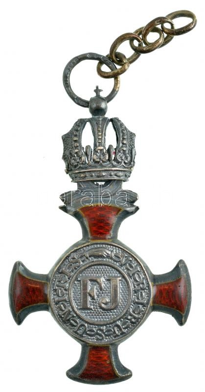 1869-1916. "Koronás Ezüst Érdemkereszt" karikán jelzett Ag kitüntetés mellszalag nélkül, függesztőkarikán fémjellel és "[WILH.] KUNZ - WIEN X" gyártói jelzéssel T:2 a medalion oldala több helyen sérült