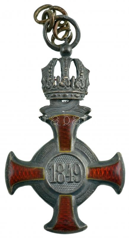 Hungary 1869-1916. "Silver Cross of Merit with Crown" hallmarked Ag decoration without ribbon, with "[WILH.] KUNZ - WIEN X" maker's mark on suspension ring C:XF the medallion is damaged on several sides