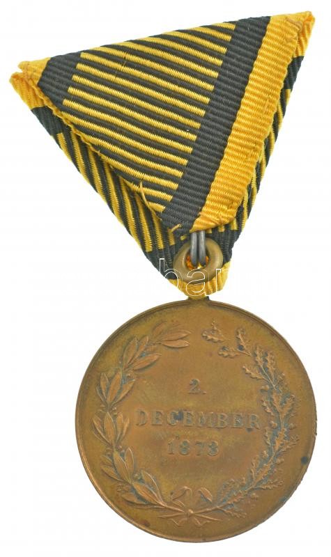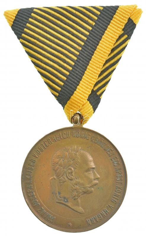 Hungary 1873. "Military Medal" Br medal with original ribbon C:AU patina, edge error