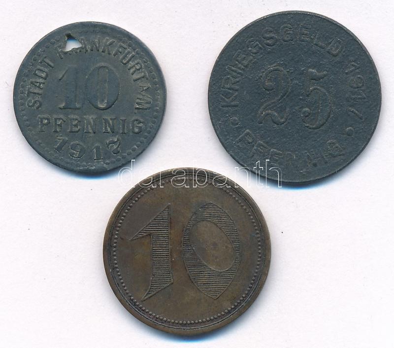 Leírás: Német Birodalom / Frankfurt 1917. 10pf Zn háromszög alakú lyukasztással, szükségpénz + Münster 1917. 25pf Zn szükségpénz + Németország / Bethel Üzeletek DN 10pf sárgaréz T:2,2-