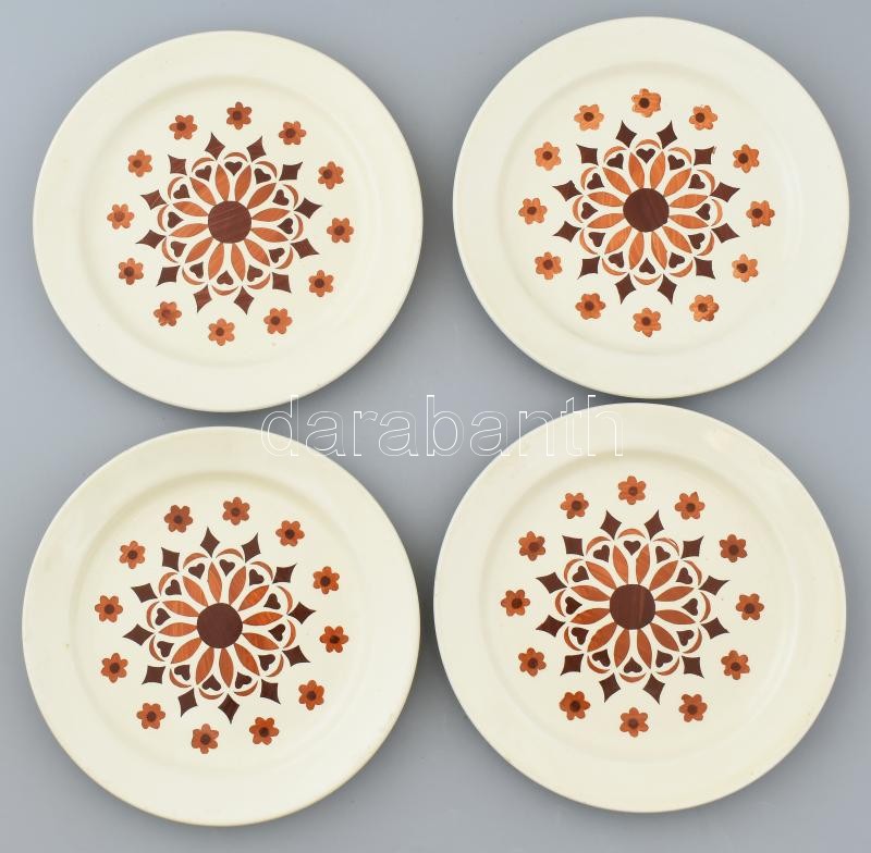 Leírás: 4 db Gránit retró mintás tányér. Jelzett, kisebb mázhibákkal, kopásnyomokkal, d: 24 cm