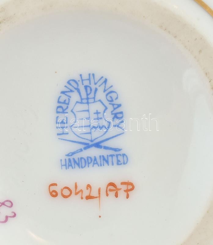 Leírás: Herendi Apponyi purpur mintás tojás bonbonier. Kézzel festett, jelzett, hajszálrepedt. m:10 cm