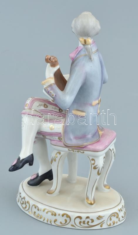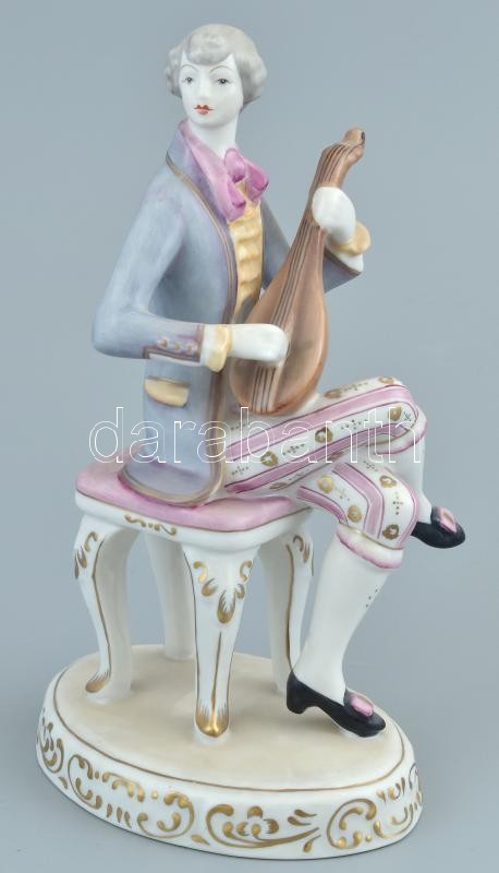 Leírás: Hollóházi rokokó férfi porcelán figura, kézzel festett, jelzett, kopásnyomokkal, m: 23 cm