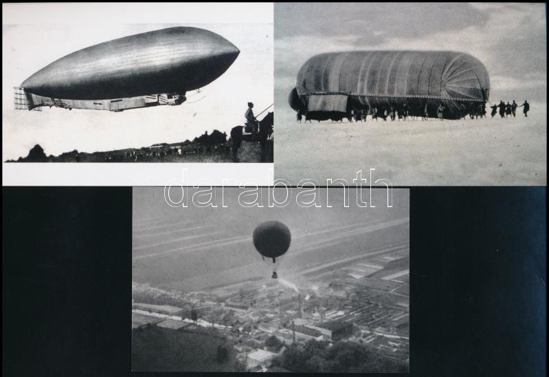 Leírás: cca 1920 előtti felvételek léghajókról, Fekete György (1904-1990) budapesti fényképész gyűjteményéből 3 db mai nagyítás, 10x15 cm
