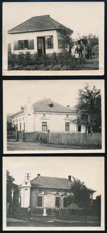 Leírás: cca 1930 Érdi részletek, postahivatal, villa, 3 db fotó, egyik sarkán törésnyomok, 6×9 cm