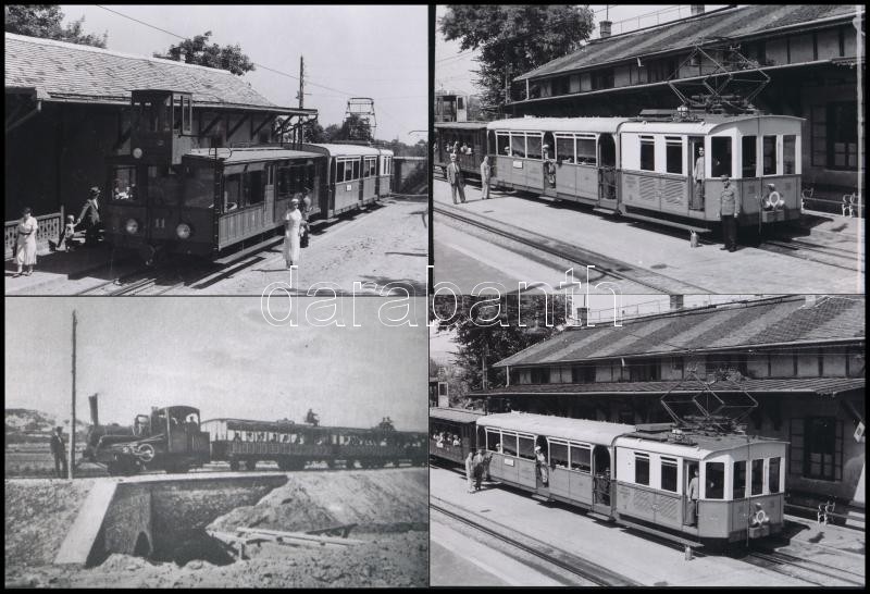 Leírás: cca 1940 előtt készült felvételek a fogaskerekűről, gőzvontatású és villanyosmotor vontatású korából, 4 db mai nagyítás, 10x15 cm