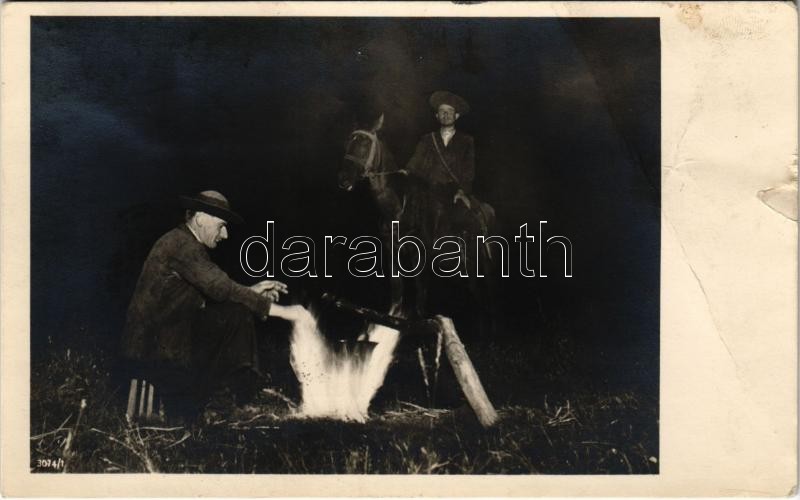 Leírás: 1952 Hortobágy, a tűz mellett, magyar folklór (szakadás / tear)