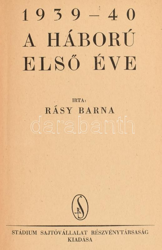 Leírás: Rásy Barna: 1939-1940 a háború első éve. Bp.,é.n.,Stádium. Egészoldalas térképvázlatokkal illusztrált. Kiadói foltos félvászon-kötésben.