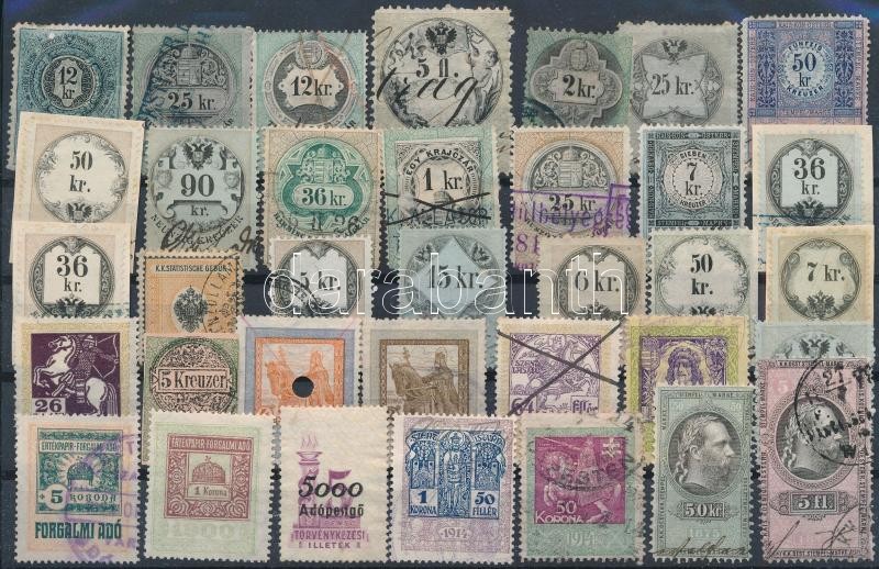 Leírás: 35 db régi osztrák és magyar okmánybélyeg
