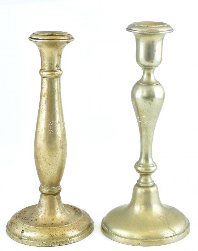 Leírás: 2db alpakka gyertyatartó, kopott, jelzés nélkül, m:26-27cm