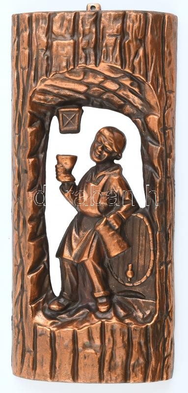 Leírás: Falplasztika, söröző, rezezett alumínium, jelzés nélkül, kopott, 33x16cm