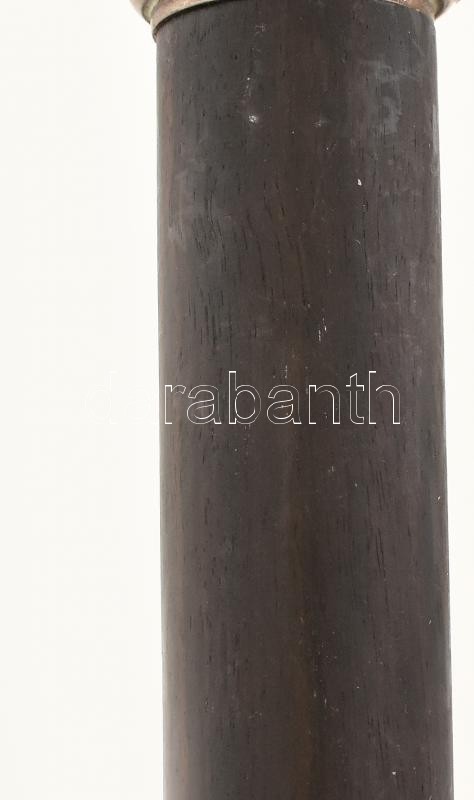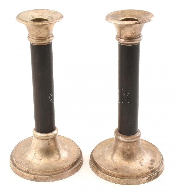 Leírás: Fém gyertyatartó pár ébenfa balüszterrel, kopottt m:22cm