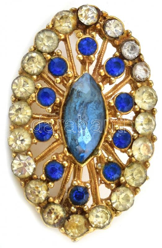 Leírás: Kék fehér köves bross, 4cm