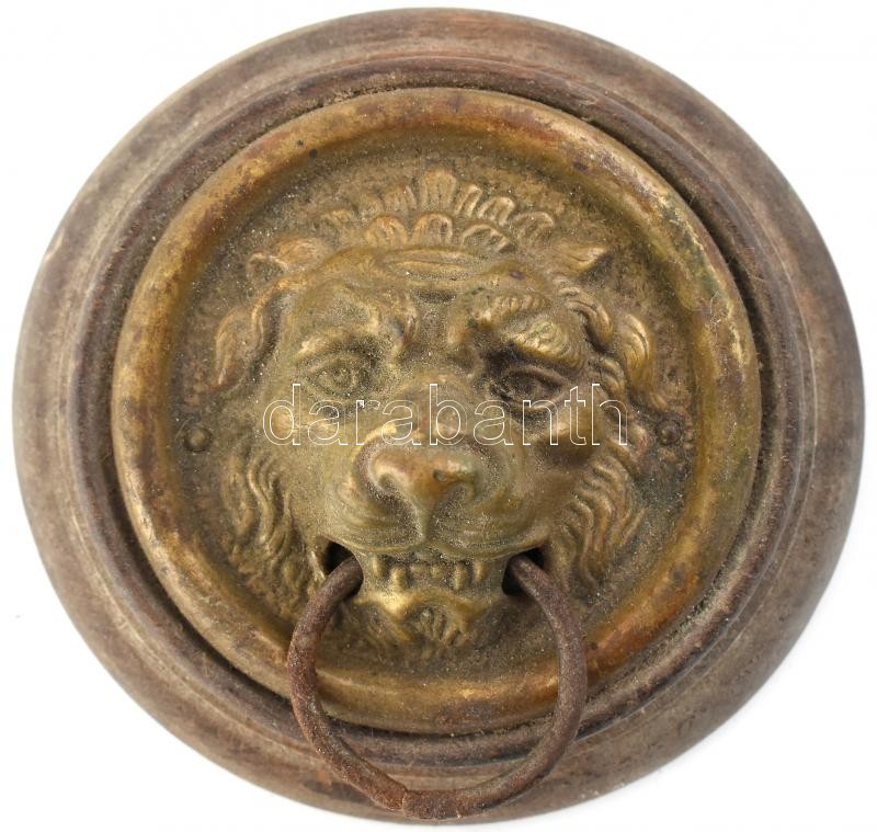 Oroszlánfejes kopogtató/dísz, fa és fém, kopottas, d: 9 cm https://www.darabanth.com/hu/413-Gyorsarveres/413.0/Mutargy-papirregiseg-egyeb/Bolhapiac~500012/Oroszlanfejes-kopogtatodisz-fa-es-fem-kopottas-d-9-cm~II2577165