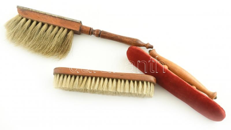 Leírás: Régi, lószőr és bársony ruha kefék