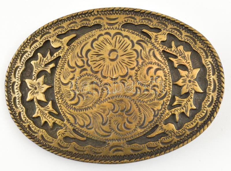 Leírás: Régi réz övcsat, kopott, 6x8cm