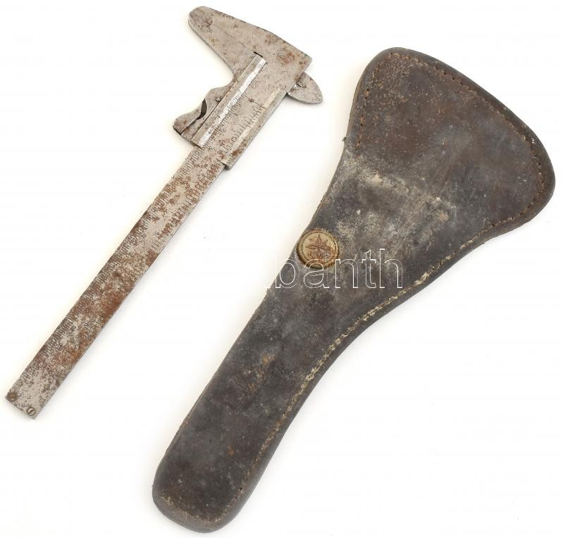 Leírás: Régi tolómérő tokkal, rozsdás