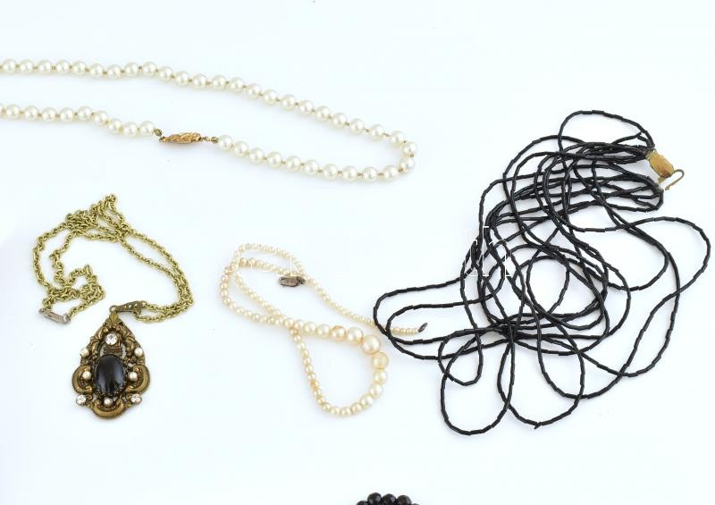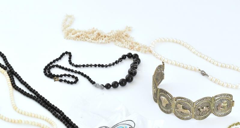 Leírás: Vegyes bizsu nyaklánc, karkötő, korall, kagylós, üveg stb.