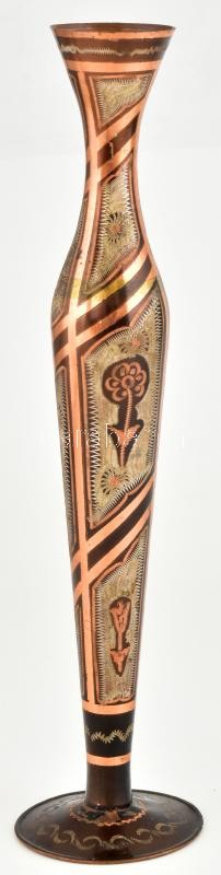 Leírás: Virágmintás vörösréz váza, kisebb kopásnyomokkal, m: 32 cm