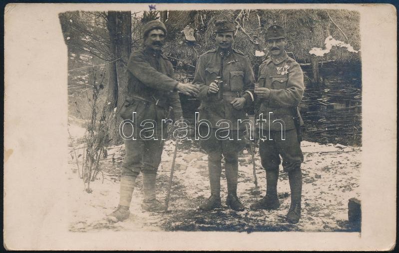 1917 Magyar katonák a fronton pálinkázás közben, hátoldalon feliratozv... https://www.darabanth.com/hu/413-Gyorsarveres/413.0/Mutargy-papirregiseg-egyeb/Militaria~500028/1917-Magyar-katonak-a-fronton-palinkazas-kozben-hatoldalon-feliratozva-jo-allapotban-8-5C3~II2581933