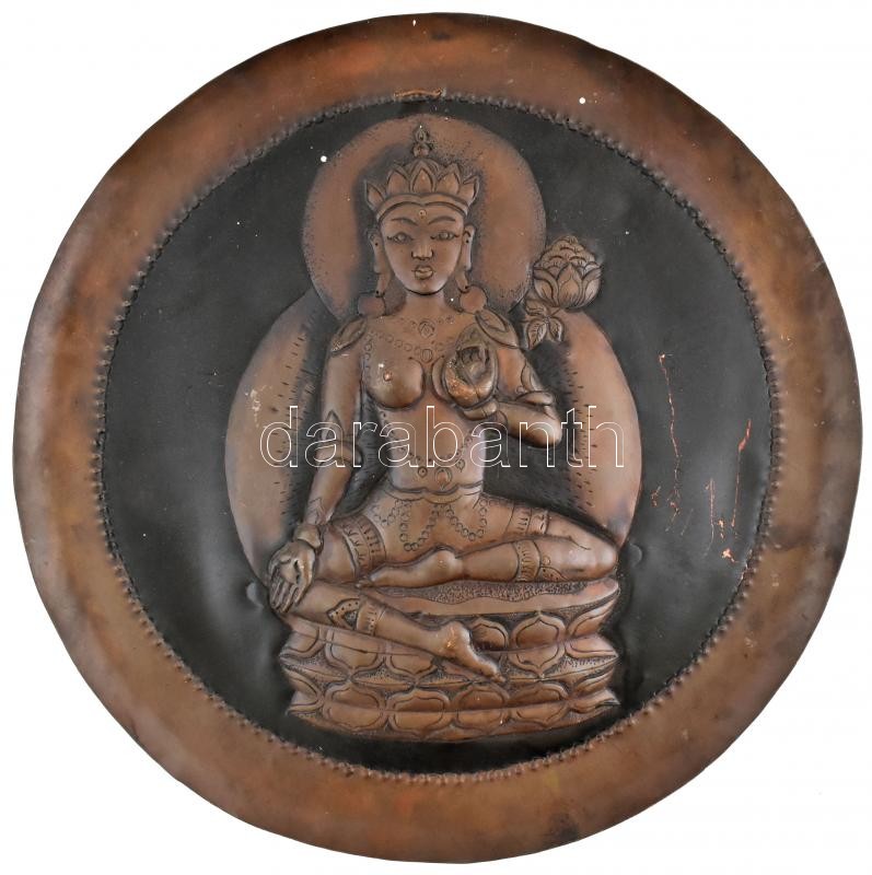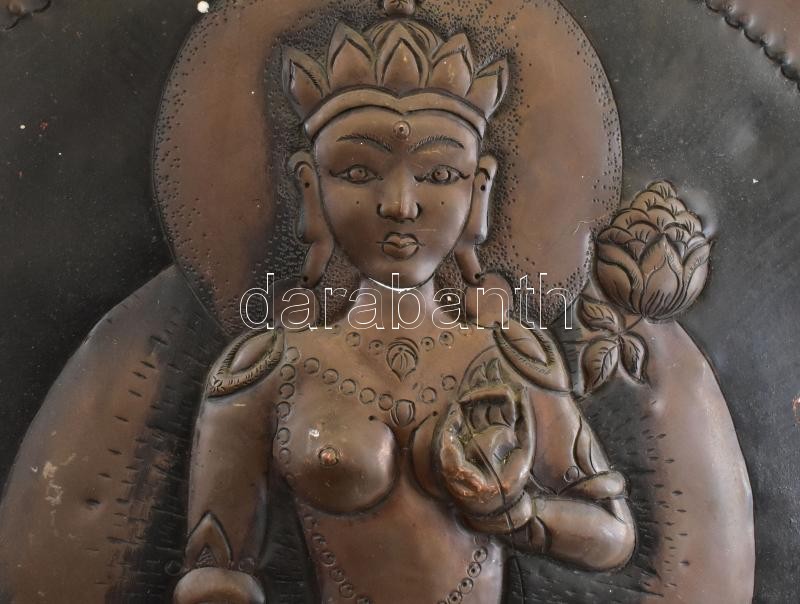Leírás: Bomborított réz fali dísztál, keleti motívummal, kopott, jelzés nélkül, d:35cm