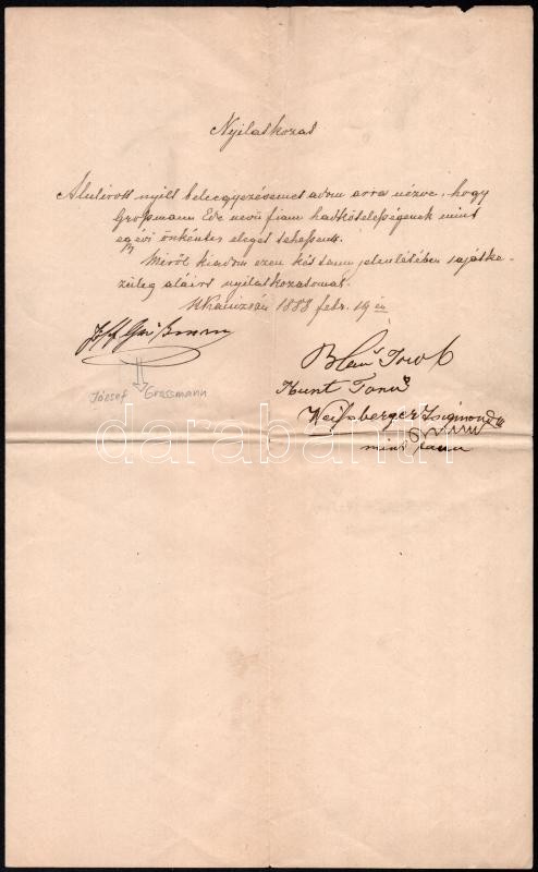 1888 Nagykanizsa, szülői nyilatkozat, hozzájárulás egy fiú egy évi önk... https://www.darabanth.com/hu/413-Gyorsarveres/413.0/Mutargy-papirregiseg-egyeb/Okmanyok~500018/1888-Nagykanizsa-szuloi-nyilatkozat-hozzajarulas-egy-fiu-egy-evi-onkentes-hadkotelezetts~II2574901