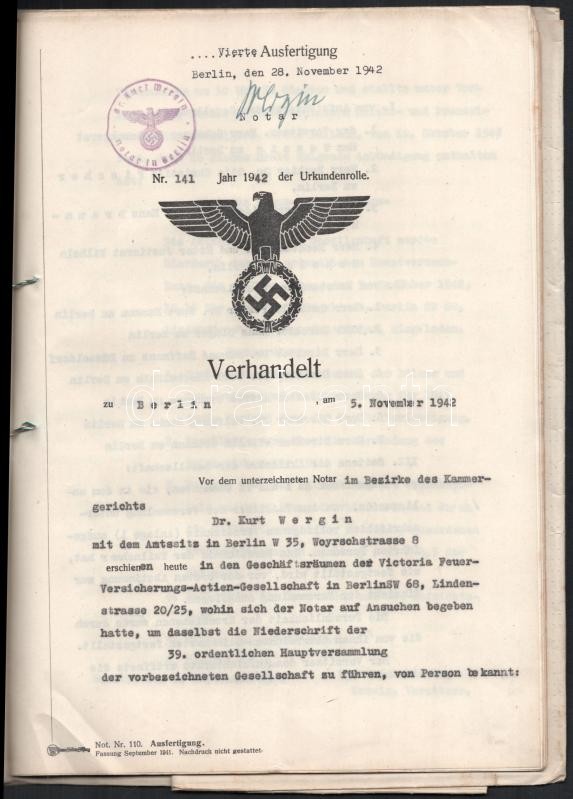 1942 Berlin, Victoria Feuer-Versicherungs-Actien-Gesellschaft üzleti j... https://www.darabanth.com/hu/413-Gyorsarveres/413.0/Mutargy-papirregiseg-egyeb/Okmanyok~500018/1942-Berlin-Victoria-Feuer-Versicherungs-Actien-Gesellschaft-uzleti-jelentes-magyar-es-nemet-ny~II2582934