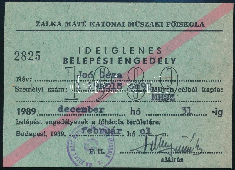 1989 Zalka Máté Katonai Műszaki Főiskola belépési engedélye https://www.darabanth.com/hu/413-Gyorsarveres/413.0/Mutargy-papirregiseg-egyeb/Okmanyok~500018/1989-Zalka-Mate-Katonai-Muszaki-Foiskola-belepesi-engedelye~II2575690