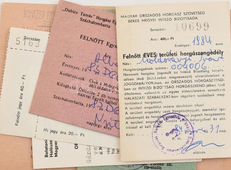 Leírás: cca 1970-1980 20 db horgászjegy vegyesen