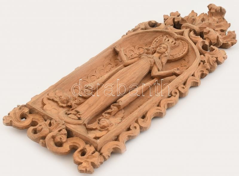 Szűz Máriát ábrázoló házi oltár, faragott fa, 59×22 cm https://www.darabanth.com/hu/413-Gyorsarveres/413.0/Mutargy-papirregiseg-egyeb/Szobrok-kisplasztikak-plakettek~500009/Szuz-Mariat-abrazolo-hazi-oltar-faragott-fa-59C39722-cm~II2576613