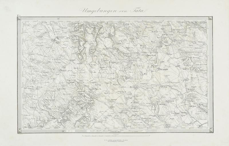 cca 1880 Umgebungen von Tata, 1:144.000, Wien, K. u. K. Militärgeografisches Institut, német nyelven, rézmetszet, papír, jelzett a dúcon (I. Wellisch - F. Bruckl), 27x40 cm, teljes lap: 36x47 cm