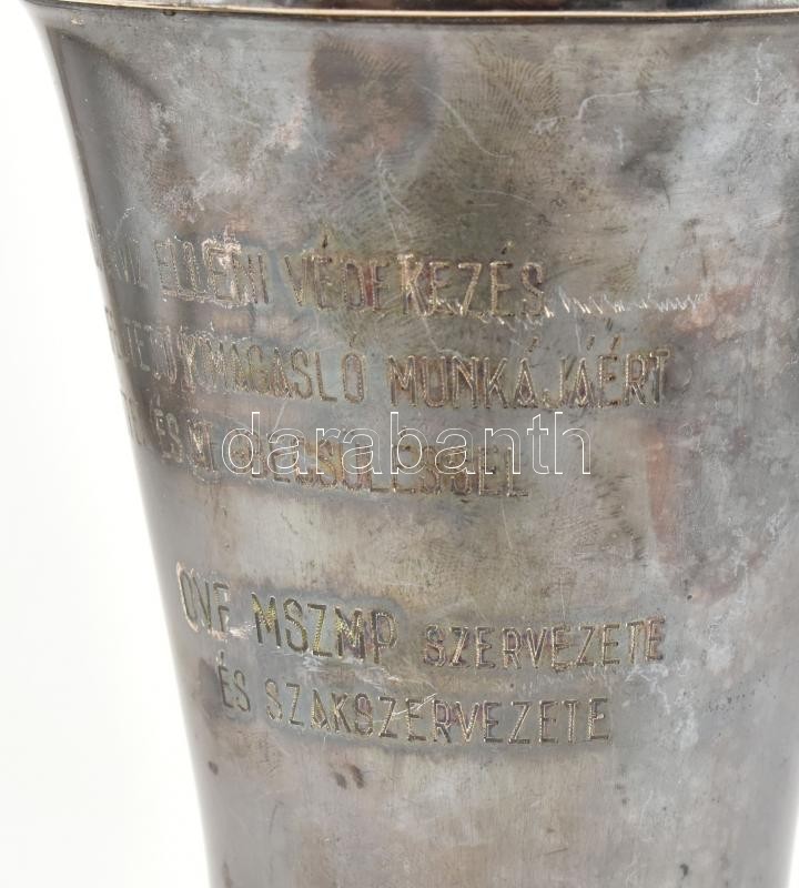 Ezüst (Ag) Serleg vésett feirattal (A nagy dunai árvíz elleni védekezés irányításában kifejtett kimagasló munkájáért szeretettel és megbecsüléssel, OVF MSZMP szervezete és szakszervezete) jelzett, nettó:419g, m:34cm