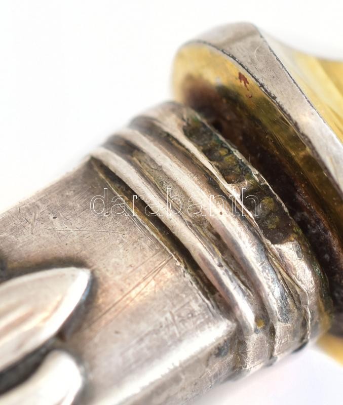 jelzett, h:20cm, b... https://www.darabanth.com/hu/413-Gyorsarveres/413.0/Nemesfem-Disztargyak-Orak-es-Ekszerek/Nemesfem-Disztargyak-Orak-es-Ekszerek~2000100/Ezust-Ag-markolatu-talaalo-villa-es-kes-serult--jelzett-h20cm-brutto94g~II2580093