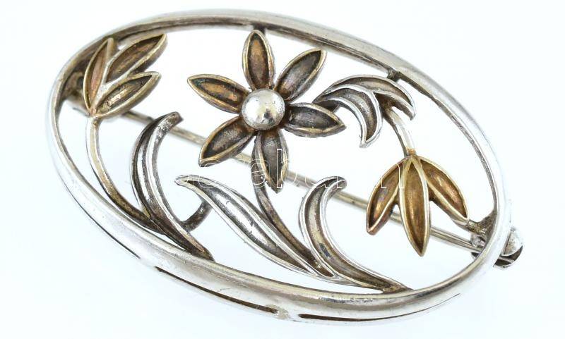 Leírás: Ezüst (Ag) virágos bross, kövekkel, jelzett, bruttó:4,3g