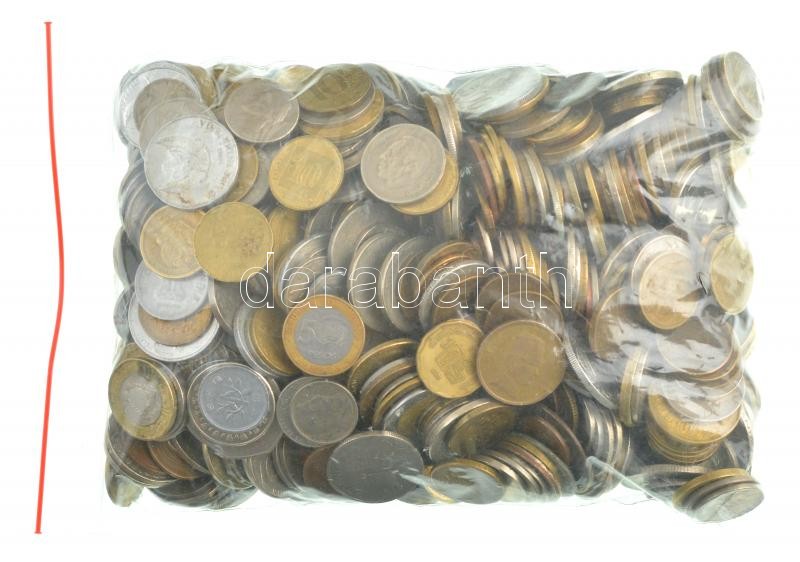 Vegyes külföldi fémpénz tétel 3,4kg-os súlyban, kevés európai érmével. Közte: Indonézia, Izrael, Thaiföld, Etiópia, Kolumbia, Mauritius, stb. T:vegyes Mixed foreign coin lot (3,4kg), with few European coins. Within: Indonesia, Israel, Thailand, Ethiopia, Colombia, Mauritius, etc. C:mixed