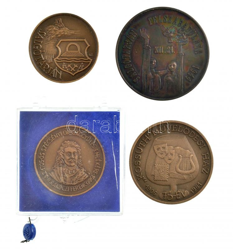 Leírás: 1980. "Az 1705-ös szécsényi országgyűlés emlékére - II. Rákóczi Ferenc / Forgách-kastély - Kubinyi Ferenc Múzeum" Br emlékérem plombált, sérült ÁPV tokban (32mm) + Bognár György (1944-) 1984. "MÉE Nógrád megyei szervezete / Salgótarján felszabadulásának 40. évfordulója" Br emlékérem (42,5mm) + DN "Salgótarján" kétoldalas Br emlékérem (32mm) + DN "ÜM. Öblösüveggyár Salgótarján / Kossuth Művelődési Ház 1906-1981" Br emlékérem (38mm) T:1-2