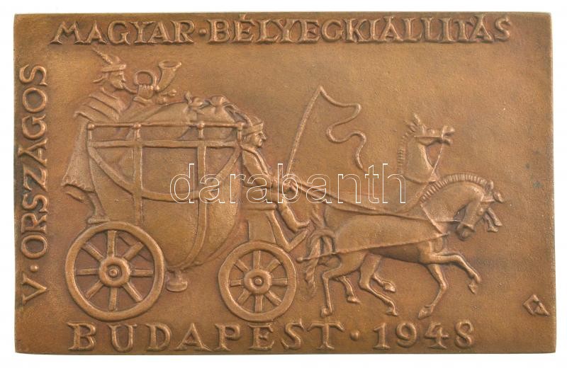 Leírás: Cziglényi Ádám (1909-1998) 1948. "V. Országos Magyar Bélyegkiállítás Budapest 1948" Br plakett (95x60mm) T:1-