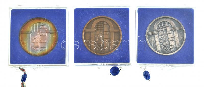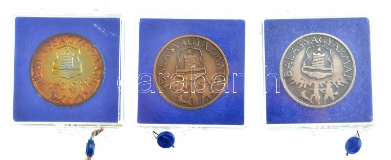 Leírás: DN "Balassagyarmat" Br, ezüstpatinázott Br és jelzett Ag emlékérem (3xklf), mindhárom plombált ÁPV tokban (egyik sérült) (~24g/0.835/32mm) T:1- patina